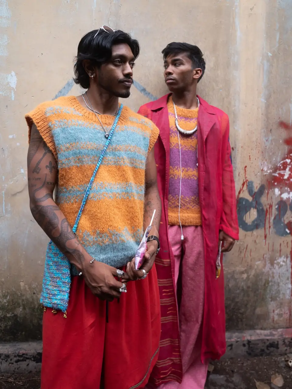 This AMESH Artisanal hand-knitted top is crafted by skilled Sri Lankan home knitter Vijayani using deadstock Norwegian Børstet Alpakka wool. This distinctive yarn blends soft alpaca fibres with a durable nylon core, creating a brushed, airy texture that feels both lightweight and luxuriously soft. Naturally hollow and breathable, the fibre adapts effortlessly to shifting temperatures providing warmth in cooler climates while remaining comfortable in the heat.